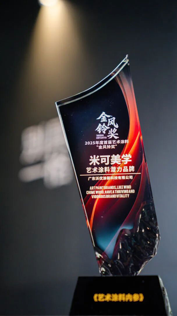 其中,在2025首届艺术涂料“金风铃奖”颁奖盛典中,米可美学荣获2025年度“金风铃奖——艺术涂料潜力品牌”。